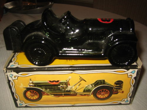 This one right here is a classic vintage 1970s Avon bottle featuring the Straight Eight race car. In this picture, the vintage original box can be seen.
