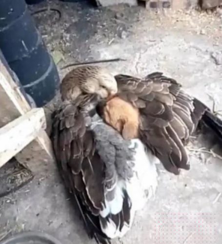 This person snapped photos of the goose with its wings wrapped around the puppy. It was a very heartwarming moment. The goose even seemed to open its wings to show off the puppy to the person, as if to declare to the world that it was doing a good deed for a puppy in need.