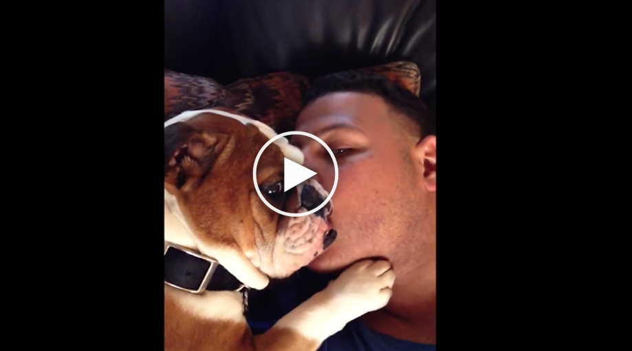 There’s nothing wrong with letting your canine companion give you endless smooches. In fact, it’s actually a good thing, as it lets your pet know you care, just as it would with humans. If you’re a pet owner, you might just be able to relate to the precious “problem” the guy in this next clip has with his adorable bulldog puppy. Like many dog owners, this guy can’t help, but let his cute pup enjoy some time snuggling in bed with him.