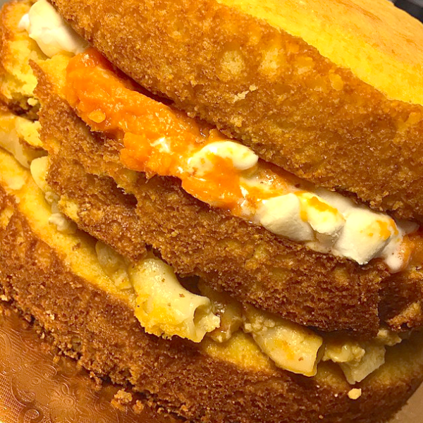 As the cake continued to grow in popularity, Bree evolved her method. Eventually it became a three-level cake, with fresh mashed potatoes spread between each cornbread layer.