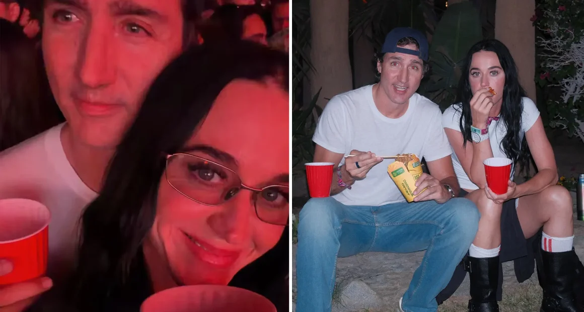 Justin Trudeau and Katy Perry eating snacks at the Coachella Valley Music and Arts Festival.