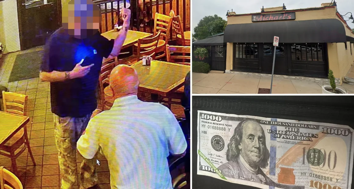 The incident unfolded when a busy server accepted what she thought was a $100 bill for a meal. Upon fetching change, she discovered it was actually a novelty $1,000 bill. By the time she returned, the man had left with a to-go bag of food and driven off in his Lexus.