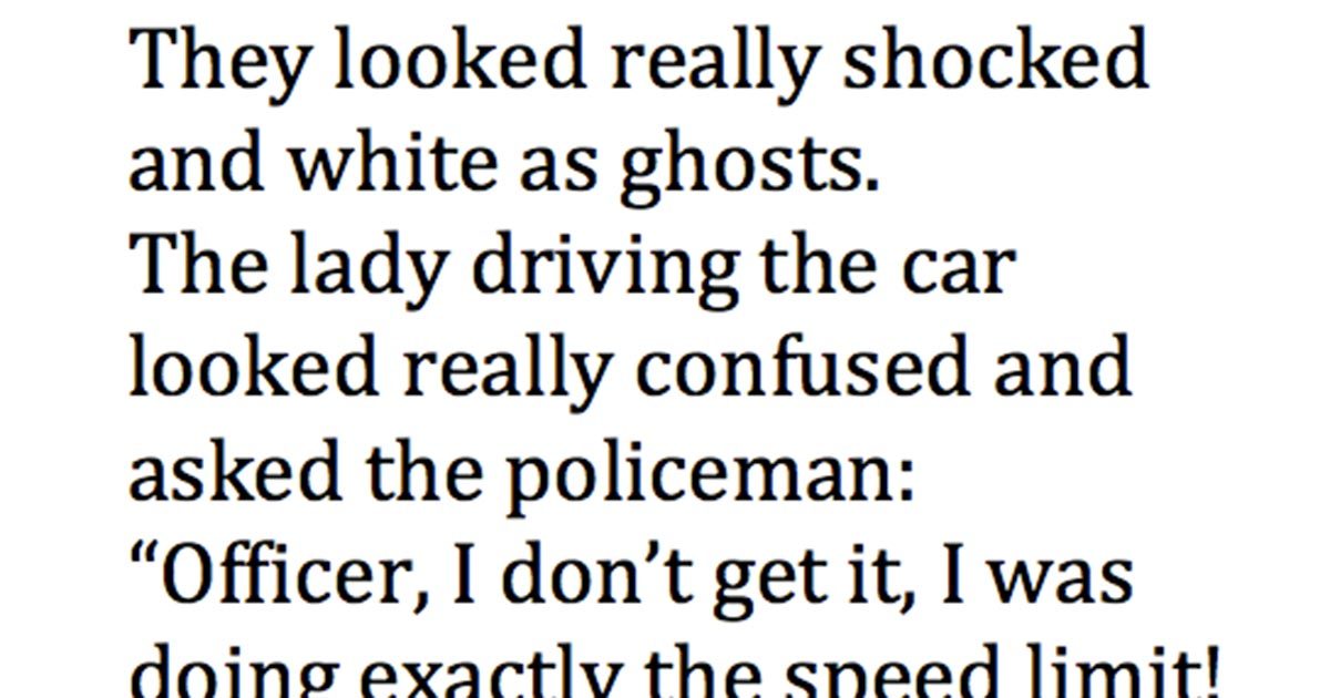 “Ma’am,” the officer replies, “You weren’t speeding, but you should know that driving slower than the speed limit can also be a danger to other drivers.”