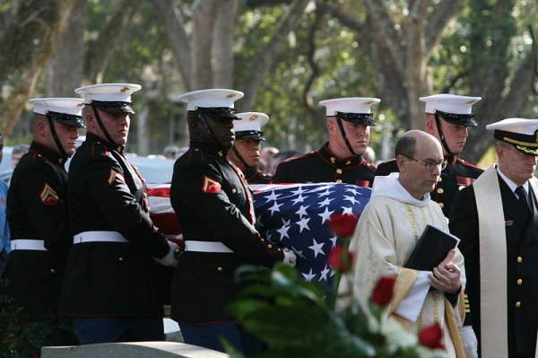 Both the men held positions as door gunners, William honored to be the only man in VMO-2 to be awarded the Distinguished Flying Cross in Vietnam. They both served a long 20 years in the Corps, Holly was decorated too. William uses a cane to help him walk, however, during the vigil at the funeral and at the casket he refrained, and stood strong for his buddy!