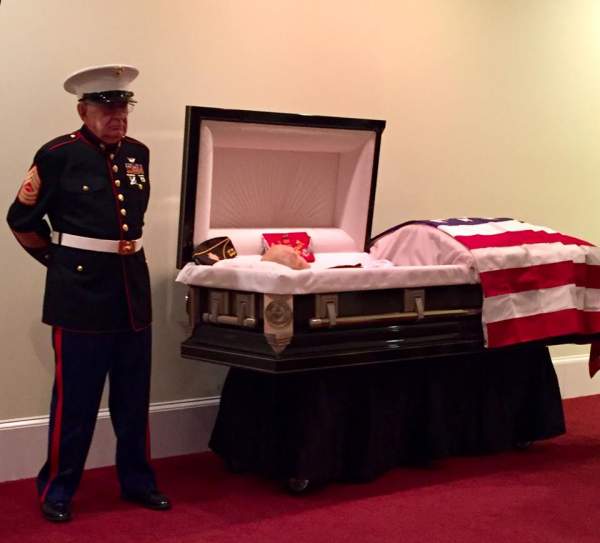 Bill Cox shared a post on the Facebook Page of the Marine Corps Veterans with, he said that it was a photo of his father standing next to a casket. The photo was about his father keeping a promise to a friend and fellow military man.