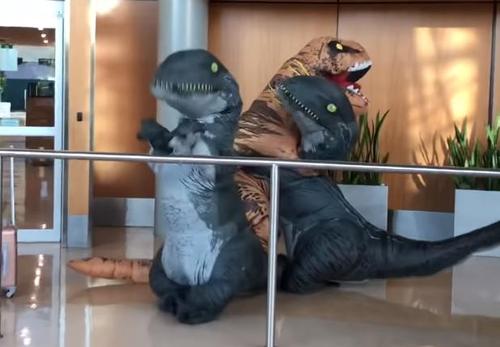 This grandma managed to one-up the Jurassic airport surprise her grandsons had set up, but it certainly wasn’t a disappointment for them. Watch as the three dinos shuffle as fast as they can to give one another big hugs.