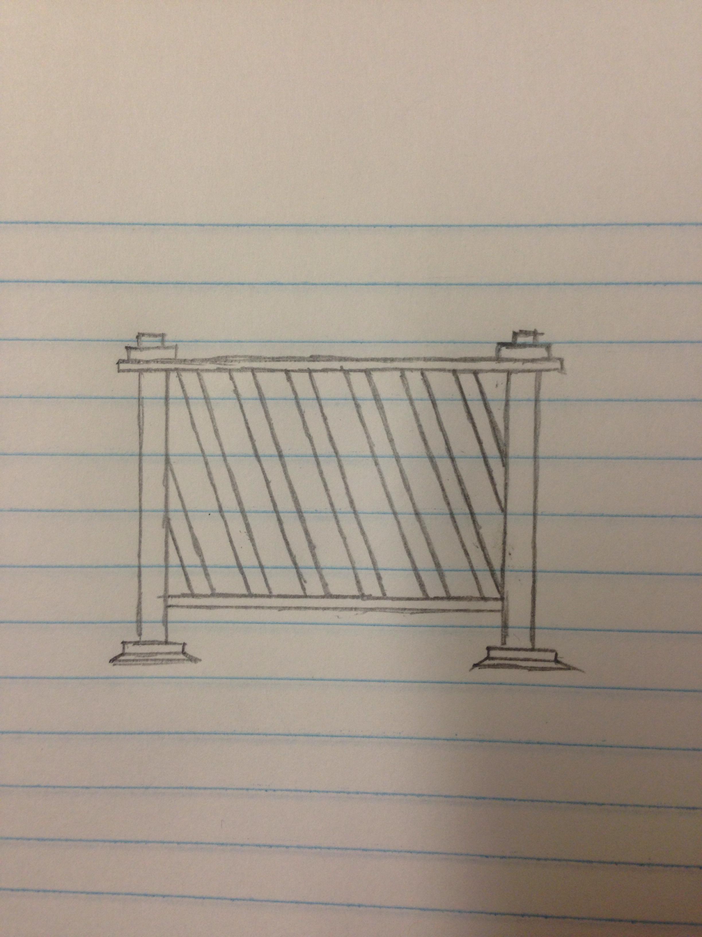 I had drawn up a couple designs for the guard rails but decided this was a bit fancy (and time consuming) for the kiddo’s fort.