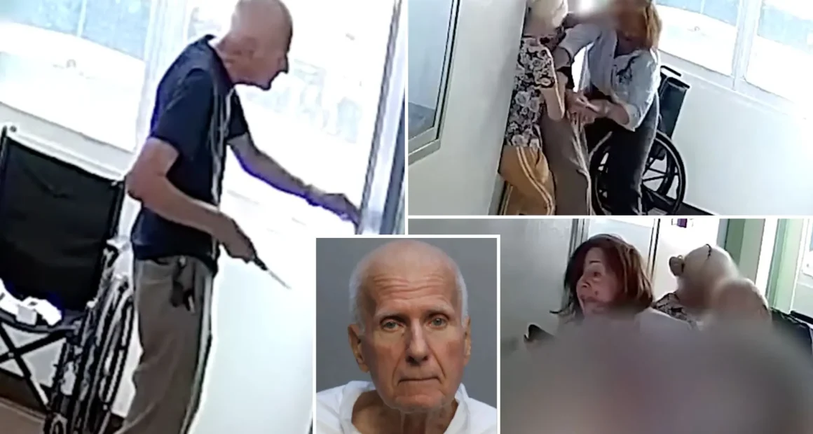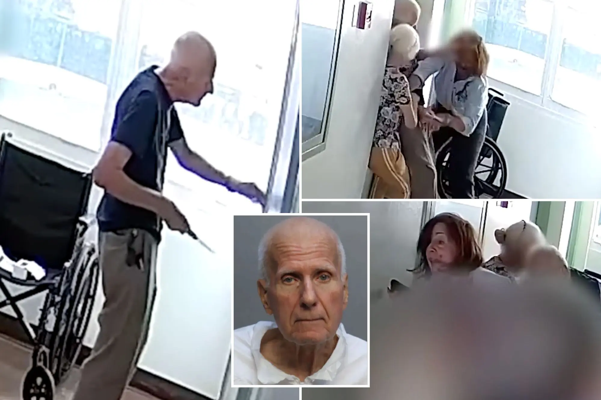 A shocking video shows an 83-year-old Florida man stabbing a worker outside his senior living apartment following a heated argument over a failed inspection.