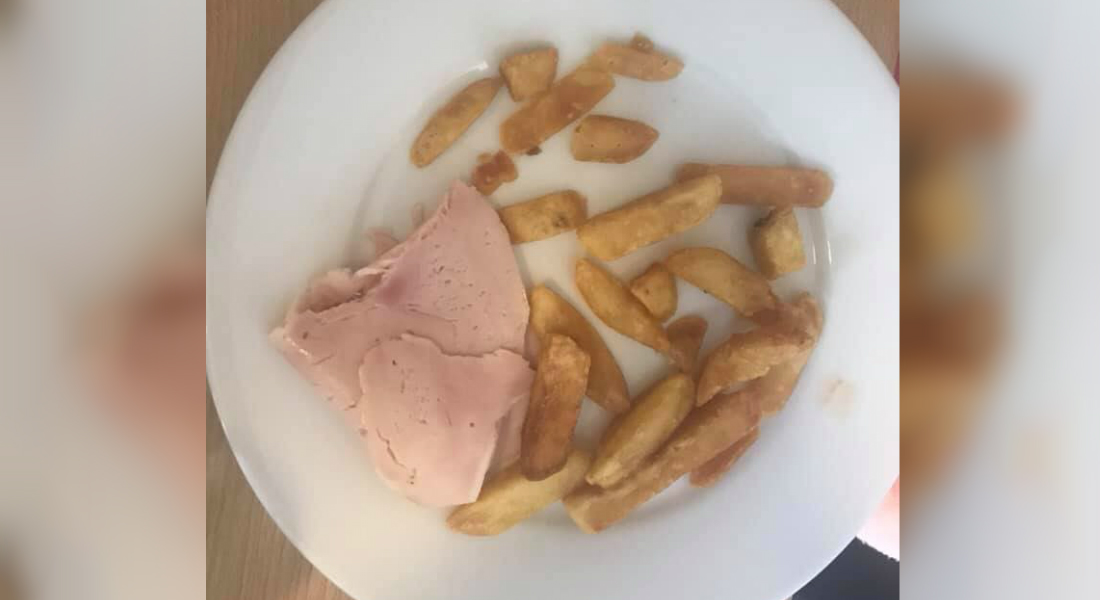 Mary Thompson, a 79-year-old woman who is a resident at Claremont Parkway in Kettering, Northamptonshire, England was served what looks like frozen chips and a slice of ham for her dinner – this when she was on the road to recovery after an operation.