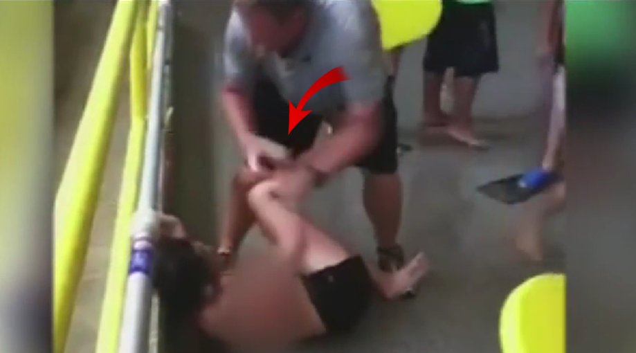 The PE teacher, Denny Peterson, has been with the school district for ten years, and there have been no previous complaints against him. Regardless of his decade-long clean slate with the district, what you will see him doing in this video is terrifying. He grabs the young girl and proceeds to drag her across the floor as her legs and arms flail. What’s even worse is that he ignores her cries as she says “Stop! My top is falling down!”and struggles to keep herself covered as he pulls her toward the water. Another student saw the altercation and began filming. When Peterson would not let up, other students tried to intervene to help Garcia, even throwing water at Peterson.