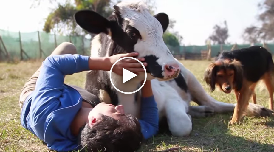 In the video below, Salvador cuddles with one his caretakers as the farm dog watches over them. It’s so sweet. It’s so beautiful to see animals and humans have such beautiful connections.