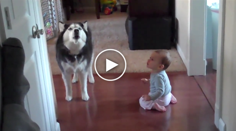 What do you get when you combine a very talkative baby and a very talkative dog? You get the best conversation ever, even if no one knows what’s actually being said! The funniest part is that it really seems like these two are having a conversation!