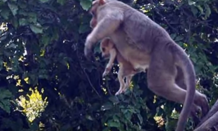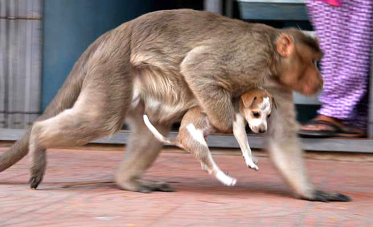 When other dangerous stray dogs get too close to his tiny friend, the monkey lashes out. He would do anything to keep him safe!