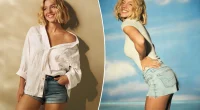For her casual outing in the Big Apple, Plaza wore a cropped white T-shirt that revealed her lower belly, paired with black shorts, a khaki jacket, white knee-high compression socks, and New Balance sneakers.