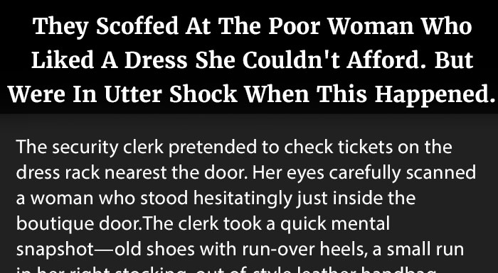 She leaned over to me and said, quietly but not quiet enough, “Honey, older and larger ladies really shouldn’t wear dresses like that, it’s not very flattering.”