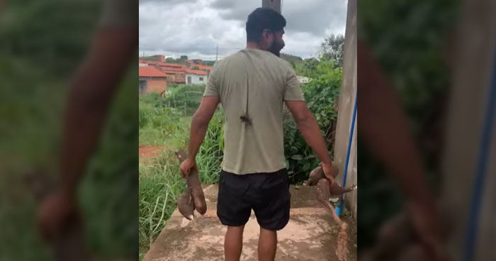 The scene was filmed in the city of Acailandia, Brazil, and we can watch the moment when a man received an unexpected visit while harvesting cassava, when a huge spider appeared on his back.