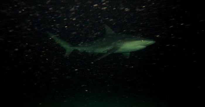 In the video, the initial scenes unfold in broad daylight, followed by the author submerging the camera into the sea during the night. The cruise ship was anchored near the coast during the filming.
