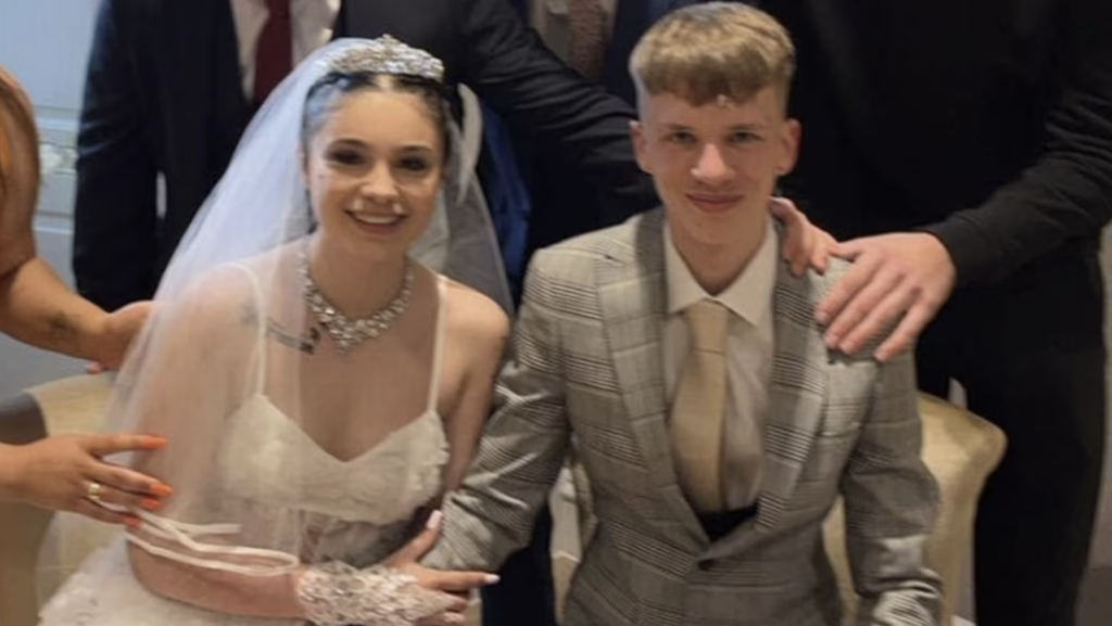 Liam Jones and his wife Sophia, 20, captured on their wedding day.